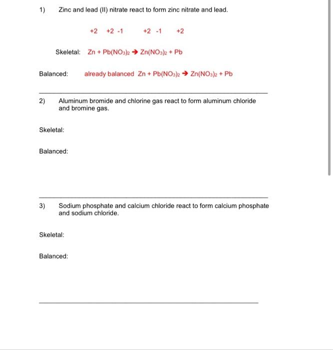 Solved 1) Zinc and lead (II) nitrate react to form zinc